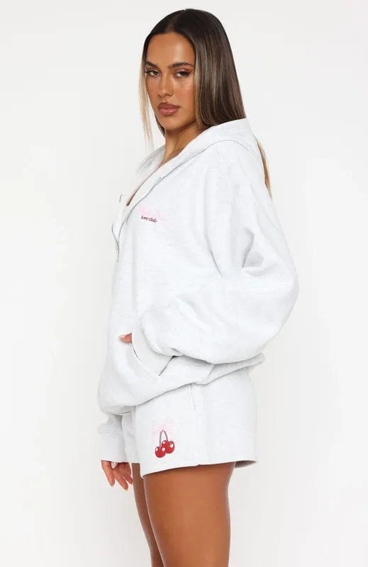 Fell So Hard Zip Front Hoodie Grey Marle