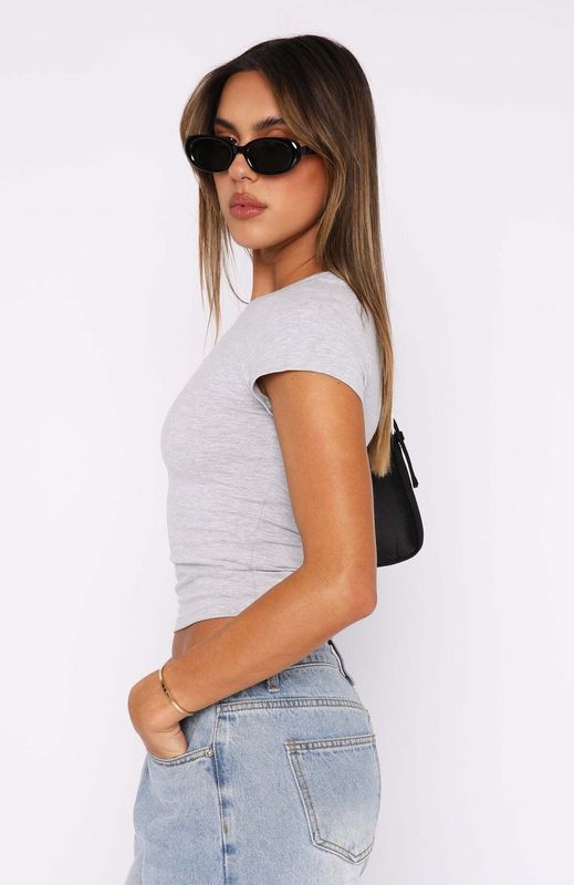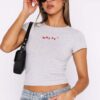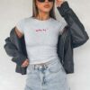 Fine Without You Baby Tee Grey Marle