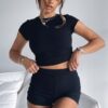 Minding My Business Ribbed Booty Shorts Black