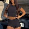 Minding My Business Ribbed Booty Shorts Black